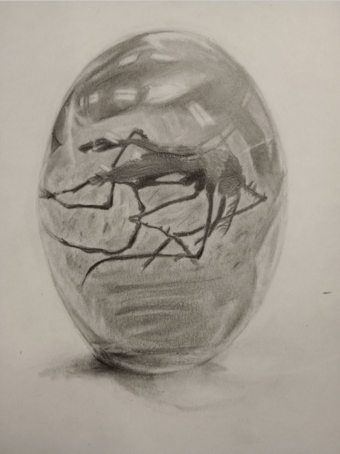 This graphite drawing started as a way to capture something small and fragile, but it grew into more than that for me. I kept it monochrome to focus on the smooth shell of the amber and the tiny details of the mosquito inside. The contrast from shading gave it depth and made the insect feel almost suspended in time.